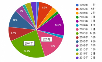 1998年~2012年までの平均は4件/竣工年だが、2005年は9件、2006年には14件と多くの不具合が発覚している。
