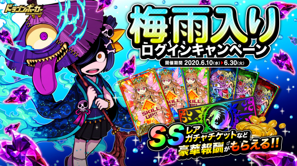 株式会社アソビズム(本社:東京都千代田区、代表取締役:大手智之)は、App Store・Google Playにて好評配信中のリアルタイム合体カードバトル『ドラゴンポーカー』で、2020年6月10日(水)より「梅雨入りログインキャンペーン」を開催いたします。