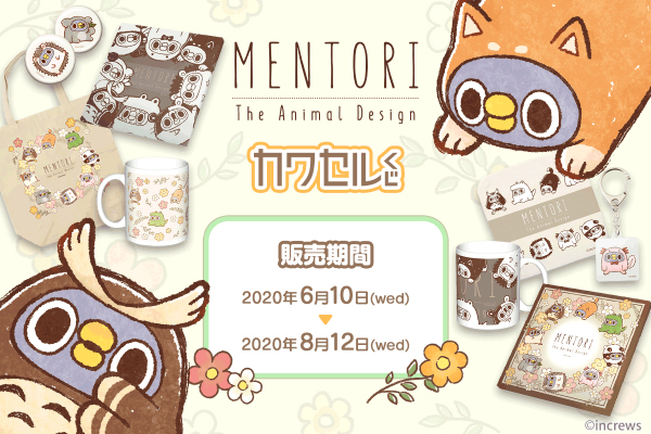 全世界のLINEクリエイターズマーケットだけで284万ダウンロードを突破し、 日本国内で開催された LINE Creators Stamp AWARDで2年連続TOP20にノミネートされた株式会社インクルーズの大人気スタンプと、そのスタンプ発の大人気キャラクターです。 大手アニメーション製作会社Production I.Gでのアニメ化、Nintendo Switchを含む12作品でのゲーム化、日本国内の大手アミューズメント施設での25シリーズ100種類を超えるプライズ化を皮切りに、その人気は日本だけに留まらず、台湾ファミリーマート全3,122店での40日間に及ぶ大規模キャンペーンキャラクターへの大抜擢や、 2019年夏に5周年を記念して、台湾の台北駅前の大型百貨店「新光三越」のワンフロアにて2ヶ月半開催し、約1,000円の入場料にも関わらず5万人以上を集客した「MENTORI特展」や中国でのぬいぐるみ・クッション・リックサックなどの大量のプライズ化など「めんトリ」の商品化実績は日本だけでなく、台湾・中国も併せると1,000種類を数え、 LINEスタンプの枠を超えた大人気キャラクターとして全世界で活躍しています。