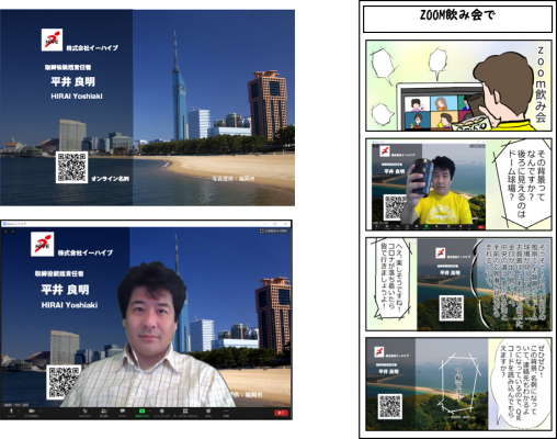 【概要】ビジネスブログ開発会社・株式会社イーハイブ(本社 福岡市中央区、代表取締役社長 高橋善晴)は、政府の専門家会議で提案された新しい生活様式の中でテレワーク及びオンライン会議、オンライン名刺交換を受け、オンライン名刺付きバーチャル背景作成ツール(地域応援オンライン名刺付きバーチャル背景メイカーhttps://www.smappon.jp/meishionline.html)を無償で提供を5月18日にはじめました。九州福岡を中心に新聞やテレビで取り上げられ、九州各県に広がりました。背景画像には、九州の各自治体さんに協力をいただき、地域の写真をバックにテレワークに参加する人が増えました。そして、6月11日に初めて九州を飛び出して、初の九州以外で群馬県下仁田町に参加していただくことになりました。