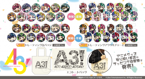 イケメン役者育成ゲーム『A3!』より、【ひょこっとトレーディングアクリルチャーム《主演衣装ver.》】【ひょこっとトレーディング缶バッジ《主演衣装ver.》】【エコトートバッグ 第3弾】の発売が決定いたしました!