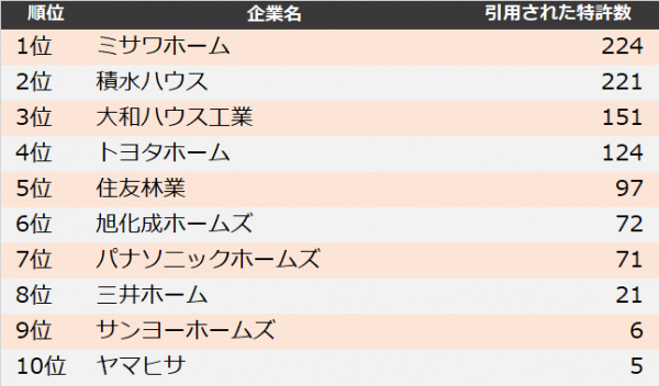 株式会社パテント・リザルトは6月29日、独自に分類したハウスメーカー業界の企業を対象に、2019年の特許審査過程において他社特許への拒絶理由として引用された特許件数を企業別に集計した「ハウスメーカー業界 他社牽制力ランキング2019」をまとめました。この集計により、直近の技術開発において競合他社が権利化する上で、阻害要因となる先行技術を多数保有している先進的な企業が明らかになります。