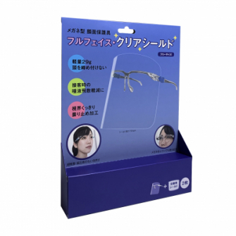 一方で、フェイスシールドの多くはバンドで頭に固定する方式を採用しており、その形状から、髪型が崩れる、頭付近が暑い、などの課題を抱えています。加えて、額部から斜めに傾斜する形状になる関係で、光の反射が起こりやすく、角度によっては顔が見えづらくなるなどの問題がありました。