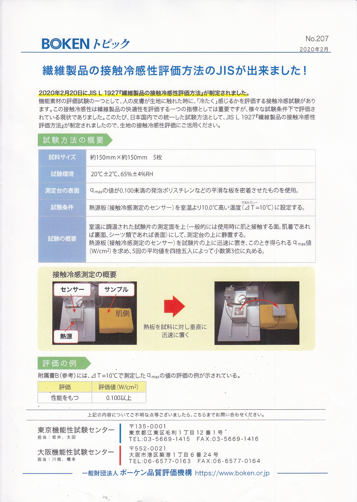 接触冷感性評価方法の試験の中で「0,100以上」の数値が出る場合は、人が生地に皮膚が触れた時に「冷たく」感じる評価でありますので、この数値があると、安心して購入できる、ひつとの指標となります。