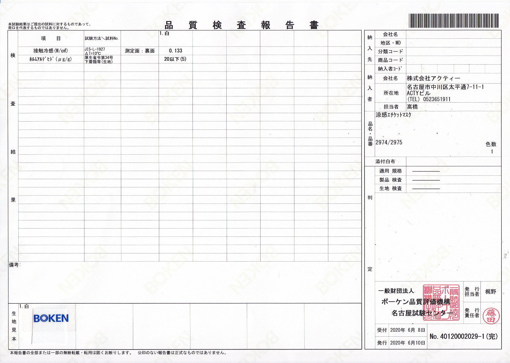 <該当の夏マスクのボーケン品質評価機構の証明書がある商品ページ>
