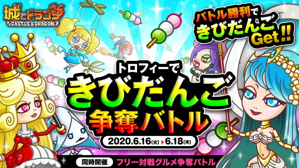 株式会社アソビズム(本社:東京都千代田区、代表取締役:大手智之)は、App Store・Google Playにて好評配信中の『城とドラゴン』で、「トロフィーできびだんご争奪バトル」を2020年6月16日(火)より開催いたします。