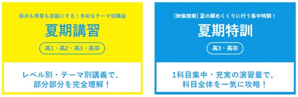 暑い夏をどう過ごすかが、毎年受験生の合否を決めています。3日連続で、テーマに絞って学習できる四谷学院の夏期講習・特訓は、「得意科目を作り出す」「苦手科目に挑戦し克服する」には絶好のチャンス。各科目単科講座形式で、レベル別・テーマ別にバリエーション豊富な講座が展開されています。一流講師陣による熱気あふれる四谷学院の夏期講習・特訓です。