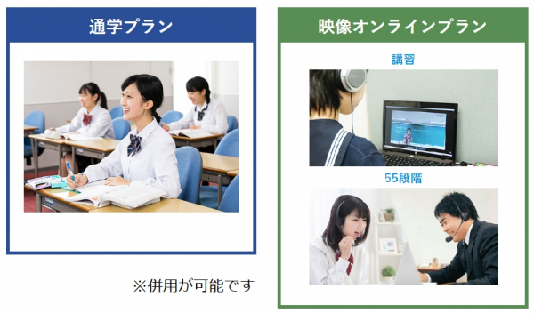四谷学院の夏期講座「通学プラン」は、例年よりも教室の定員を抑えて、座席が隣接しないように実施していきます。さらに、自宅で学習できる「映像オンラインプラン」と、2つの形式から選ぶことができます。通学とオンラインを併用することも可能です。