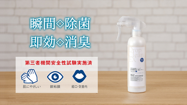 大切なのは安全に安心できること。Drop Clean EXは日々の生活の不安を取り除くために製品化しました。本品は大切な日々を守るため、大切な人を守るため、性能はもちろん環境にも人にも優しい成分で出来た除菌・消臭スプレーです。