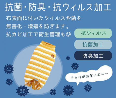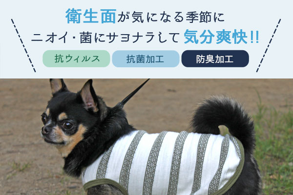 抗菌加工のお洋服で、お家でもおでかけでも愛犬を守りましょう。