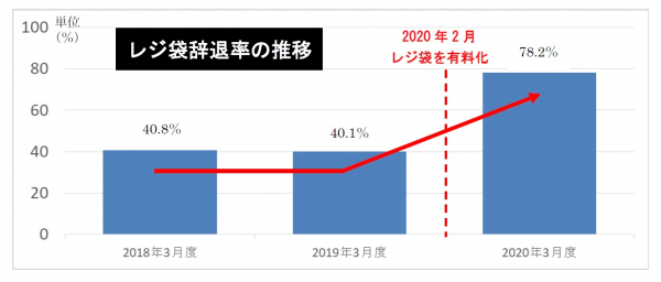 大阪いずみ市民生協は、2017年に「SDGsのとりくみ方針」を策定し、循環型社会の実現に向けた取り組みをすすめています。その一つとして、2020年2月より、全てのお店でレジ袋を有料化しました。結果、レジ袋の辞退率は40.1%(2019年3月)から2020年3月の78.2%(2020年3月)へと38.1ポイント上昇しました。(2020年6月19日発表)