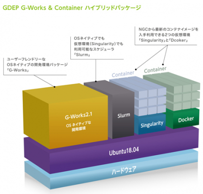 NVIDIA社のエリートパートナーである株式会社ジーデップ・アドバンスは、軽量かつ直感的で扱いやすいOSネイティブなG-Worksバイナリアプリケーションに加え、より最新技術へのアクセスが容易となるコンテナアプリケーションの併用を可能とするために、Docker / Singularity / Slurmを同時インストールした「G-Works & Container Hybrid」を本日6月22日(月)よりリリースします。