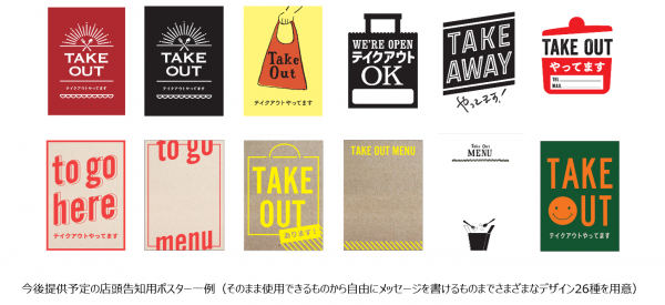 支援プロジェクトでは今後、7月中旬以降から魅力的なテイクアウト用のメニューブックの提供をはじめ、店内用ポスター、容器ラベルなどを提供予定です。