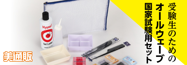 「オールウェーブ国家試験用セット」は、今回の実技試験第2課題「オールウェーブセッティング」に必要なセットローションやコームなどの商品を揃えてセットにした、便利でお得なアイテムです。試験用の道具・用品を単品で揃えようとすると、時間もコストもかかるものです。「美通販」では、合格に向けて頑張る受験生の皆様を後押ししていきたい思いで、「オールウェーブ国家試験用セット」を業界最安値を目指した美通販会員特別価格でご提供します。収納用ケースも付いているので、持ち運びにも便利です。