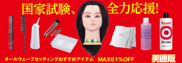 2020年8月1日(土)から実施される、第42回 美容師国家試験まで、残り日数もわずかとなりました。「美通販」では、今回の実技試験第2課題である「オールウェーブセッティング」に必要なおすすめアイテムを多数ピックアップ。合格に向けて頑張る受験生を後押ししていきたい思いで、最大62%OFFの業界最安値を目指した美通販会員特別価格でご提供します。キャンペーンは7月31日(金)までとなっておりますので、この機会に受験生の皆様の国家試験対策として大いに活用していただきたい次第です。