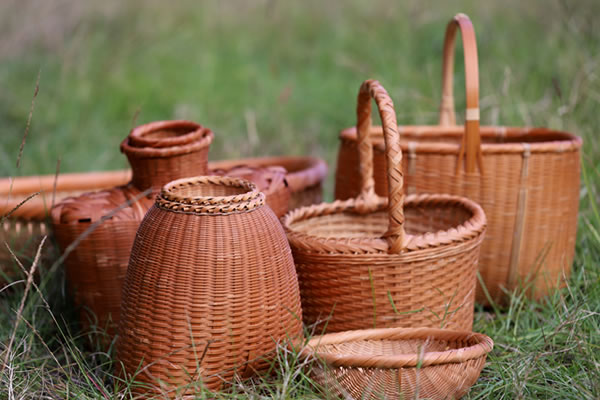 今回の展示内容は、昔から熟練の職人が編んできた籠やざるといった身近な生活道具をご紹介するものです。素朴な竹カゴには、網目の向こうに人の暮らしが見え隠れするあたたかな魅力があります。中でも磨きと呼ばれる、竹表皮を薄く剥いだ竹ヒゴで編まれた篭や笊は、できたばかりの時からは思いもよらない色合いが深まり、長年愛用すれば無二の友人のようにも思えます。
