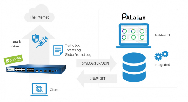 PALallax(パララックス)はパロアルトネットワークス次世代ファイアウォールの、Traffic/Threat/GlobalProtectログの可視化、機器ステータスの可視化が行えるツールです。ダッシュボードのカスタマイズを柔軟に行うことが可能で、ログ解析に必要な情報を簡単に表示できます。