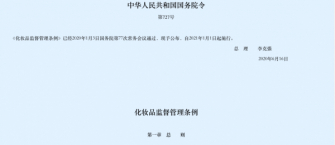中国国務院は、新しい「中国化粧品監督管理条例」を6月29日に発表。