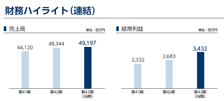 当連結会計年度の売上高は49,197百万円(前連結会計年度比1.8%増)、営業利益は3,700百万円(同34.5%増)、経常利益は3,432百万円(同27.9%増)、親会社株主に帰属する当期純利益は1,576百万円(同17.0%減)となりました。