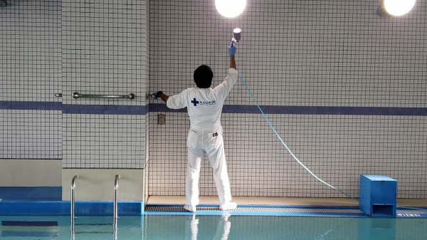 『ダイビングショップ マリン(大阪ダイビングカレッジ)』では、お客様をお迎えするため可能な限りの感染症対策をおこなうべく、「チタセランコーティング」を使用し施設全体への除菌抗菌加工をおこなった。