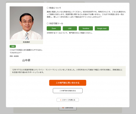 (2)気になる専門家が見つかったら、お問い合わせフォームから直接専門家に連絡をする
