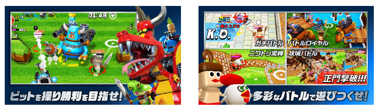 さまざまなビットを使い、「ガチバトル」「バトルロイヤル」「ニワトリ泥棒」「攻城バトル」の 4種類のバトルモードを遊びつくせます。