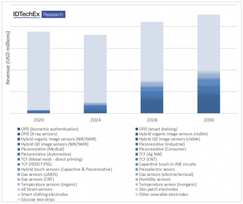 IDTechExの新しい市場調査レポート、 『プリンテッドおよびフレキシブル センサー 2020-2030年: 技術、有力企業、見通し』は、プリンテッド&フレキシブルセンサーの全体をカバーしています。合計すると、プリンテッドセンサーはプリンテッド・エレクトロニクス市場において最大の規模を占めています。