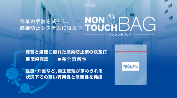 医療・介護施設での感染対策に役立つ、細菌やウイルスを遮断しつつ、温水で完全に溶解するフィルムバッグ『NON-TOUCH BAG』が2020年7月3日から予約販売開始。