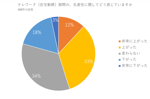 ・テレワーク期間の生産性について回答者の79%が変わらない、または上がったと感じた