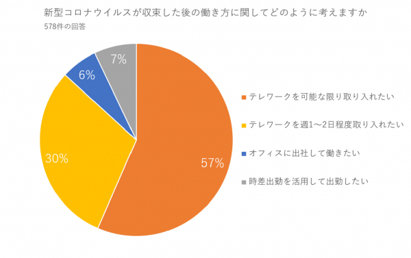 ・回答者の87%が何らかの形で今後もテレワークを継続したいと考えている