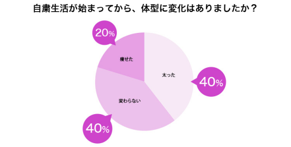 自粛生活中の運動不足による「自粛太り」が話題ですが、アンケートでは全体の約4割を占めており、かなりの人が該当している様子。