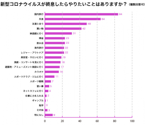 「外食」「友達と会う」「買い物」といった、これまでであれば日常的にできていた事柄も多く選ばれました。