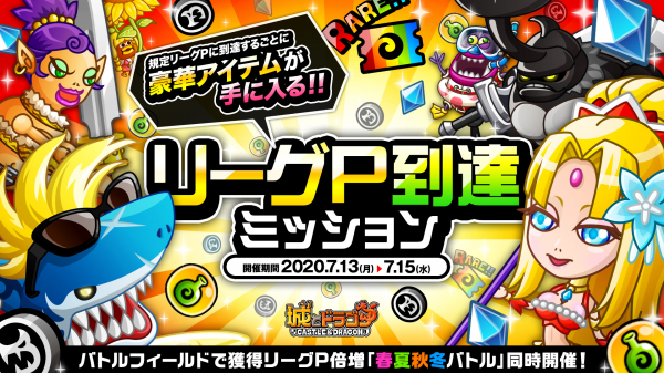 株式会社アソビズム(本社:東京都千代田区、代表取締役:大手智之)は、App Store・Google Playにて好評配信中の『城とドラゴン』で、「リーグ」および「リーグP到達ミッション」を2020年7月13日(月)より開催いたします。