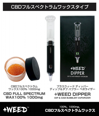 株式会社GRENN RUSH BY WEEDは、吸うCBD【+weed】(プラスウィード)から、「CBDフルスペクトラムワックス100% 1000mg」を8,000円(税抜)、CBDワックス専用の本格派デバイス「プラスウィード ディッパー ディップ&ダブ バブラー ベポライザー」を10,000円(税抜)で2020年7月13日(月)に発売いたします。
