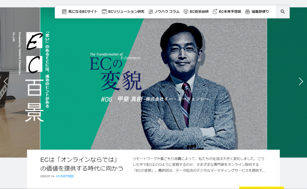 “おもてなしを科学する”株式会社イー・エージェンシー(東京都千代田区、代表取締役:甲斐 真樹、以下イー・エージェンシー)は、2020年7月14日(火)、ヤマトフィナンシャル株式会社が運営するECメディアサイト「EC百景」に、弊社代表のインタビュー記事が掲載されたことをお知らせいたします。