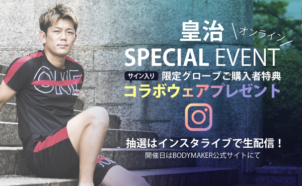 「TEAM ONE×BODYMAKER コラボスパーリンググローブ」ご購入者の中から抽選で1名の方に、同時発売のコラボウェア(サイン入り)をプレゼントします!