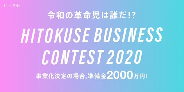 株式会社ヒトクセ(本社:東京都新宿区、代表取締役社長:宮崎 航、以下ヒトクセ)は、2020年7月22日(水)から2020年9月27日(日)にかけて、ビジネスコンテスト「HITOKUSE BUSINESS CONTEST 2020」を開催します。