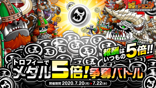 株式会社アソビズム(本社:東京都千代田区、代表取締役:大手智之)は、App Store・Google Playにて好評配信中の『城とドラゴン』で、「トロフィーでメダル5倍!争奪バトル」を2020年7月20日(月)より開催いたします。