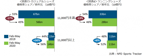 カジュアルスニーカーやランニングシューズで高価格帯の成長が顕著
