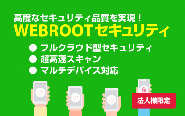 (※) WEBROOTセキュリティは、安心補償(月額400円(税抜)のオプションサービスです。安心補償サービスと同時に申込む必要があります。