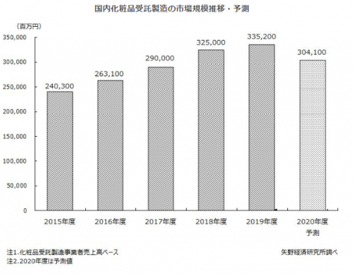 株式会社矢野経済研究所(代表取締役社長:水越孝)は、国内の化粧品受託製造市場を調査し、現況、参入企業の動向、および将来展望を明らかにいたしました。