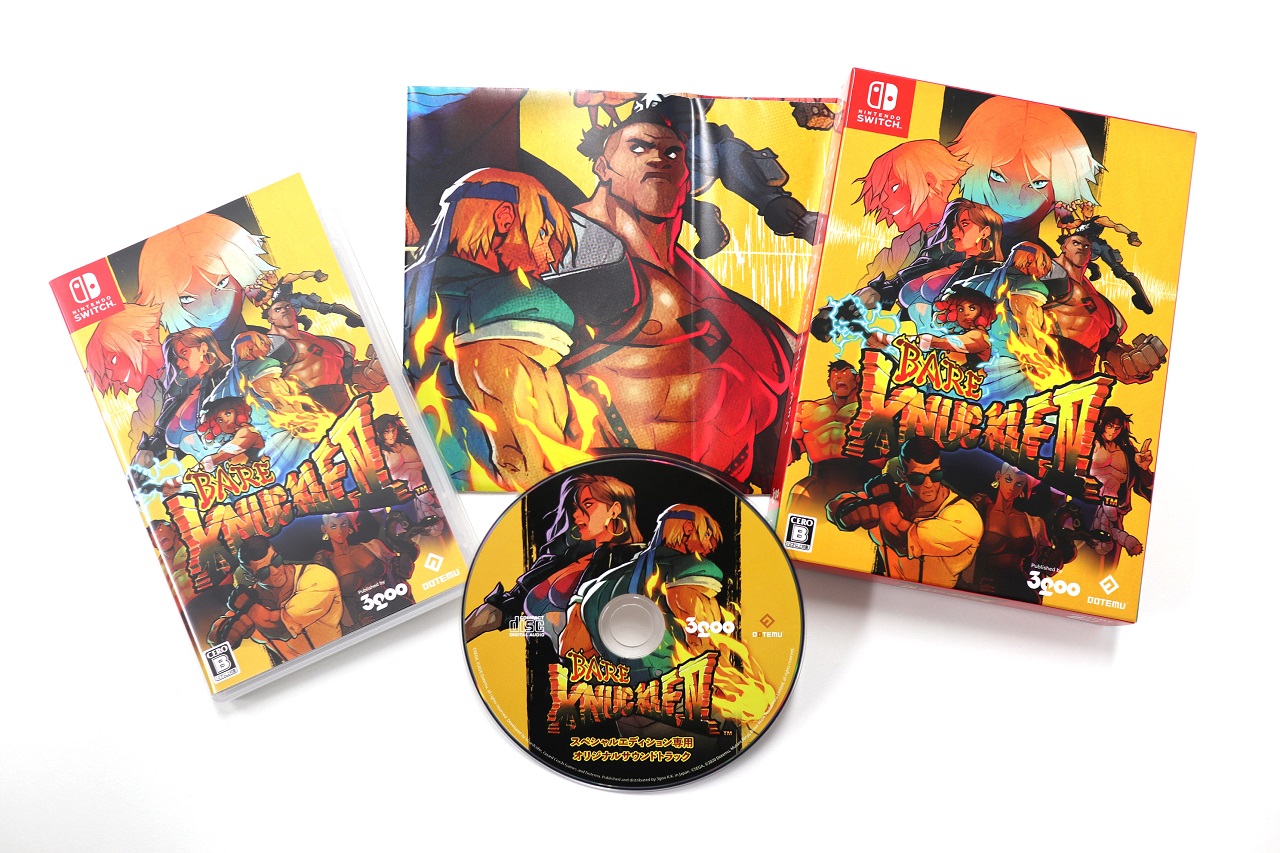 懐かしいヒーローたちと新キャラクターがフロントを飾る『ベア・ナックルIV スペシャルエディション』は、90年代にファンを魅了した、象徴的なアイテムを詰め合わせたパッケージ。Switch版のレトロサイズボックスは、タテ178ミリ、ヨコ127ミリ、厚さ30ミリサイズで、『ベア・ナックル』シリーズ3作の隣に一緒に並べて楽しんでいただける特製ボックスでお届けします。