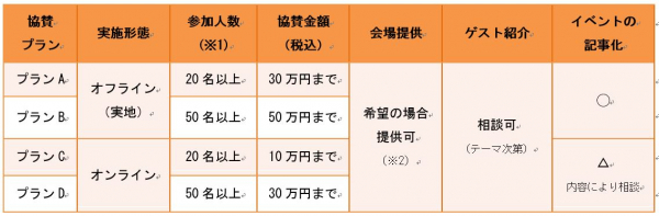 条件と大きく異なる場合、ご相談の上協賛金額を確定させていただきます。