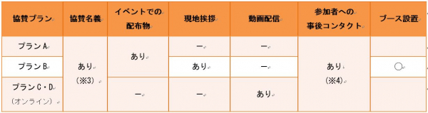 プランA・Bはオフライン(実地)開催、プランC・Dはオンライン開催。