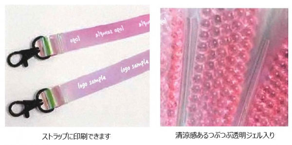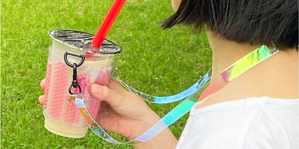 当社が開発した『ジェルドリンクホルダー』は、カップ部分に涼しげな見た目のジェル素材を使用。ストラップで首からぶら下げることができるので、歩きながらハンズフリーでおしゃれにドリンクを持ち運ぶことができます。清涼感のあるつぶつぶ透明ジェルや、動くたびにキラキラするトレンドのオーロラカラーのストラップは、“インスタ映え”を目的に「タピオカドリンク」や「チーズティ」を購入する女子にとっては、さらに「タピ活」を盛り上げるアイテムといえます。