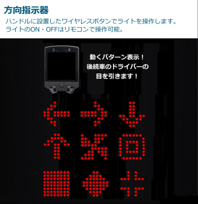 ・車道を早いスピードで走行する時に、クルマやバイクへ自転車で方向指示器や車幅灯などの意思表示が可能!