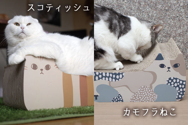 ゆるやかなカーブが猫ちゃんの身体にフィットするので、つめとぎだけでなくお昼寝したり、愛猫のお気に入りスポットに。