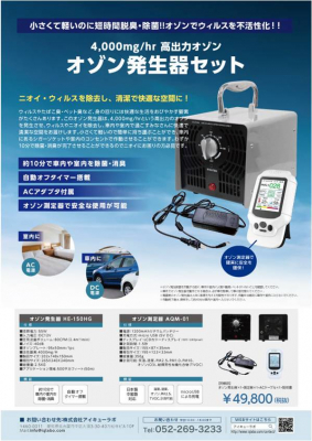スマートフォンアクセサリーメーカー株式会社アイキューラボ(本社所在地:愛知県名古屋市中区大須3丁目30-40万松寺ビル10F、代表取締役:丸山和之、以下アイキューラボ)は、車内や室内等の密閉空間を除菌するアイテム『4,000mg/hr 高出力オゾン発生器・測定器セット』を8月3日より予約を開始、9月1日販売を開始します。