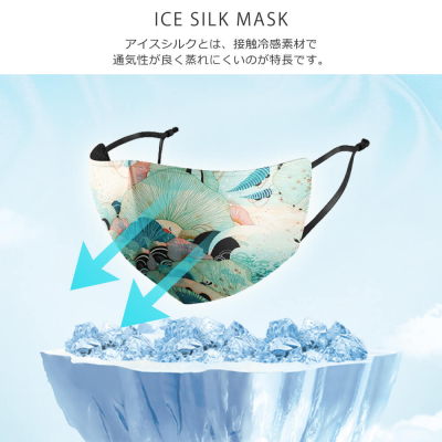 ・マスクをつけても「涼しい」、「蒸れない」、「触り心地がいい」特性を持つアイスシルク素材