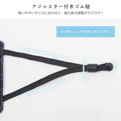 ・耳が痛くならずに済むヒモの長さを調整できるアジャスター機能